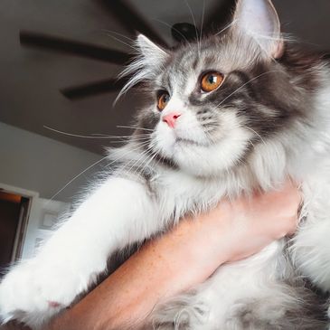 This SWEET SWEET boy is showing alllll the Maine Coon traits, he’s very well rounded with the perfect amount of playfulness and cuddles.
